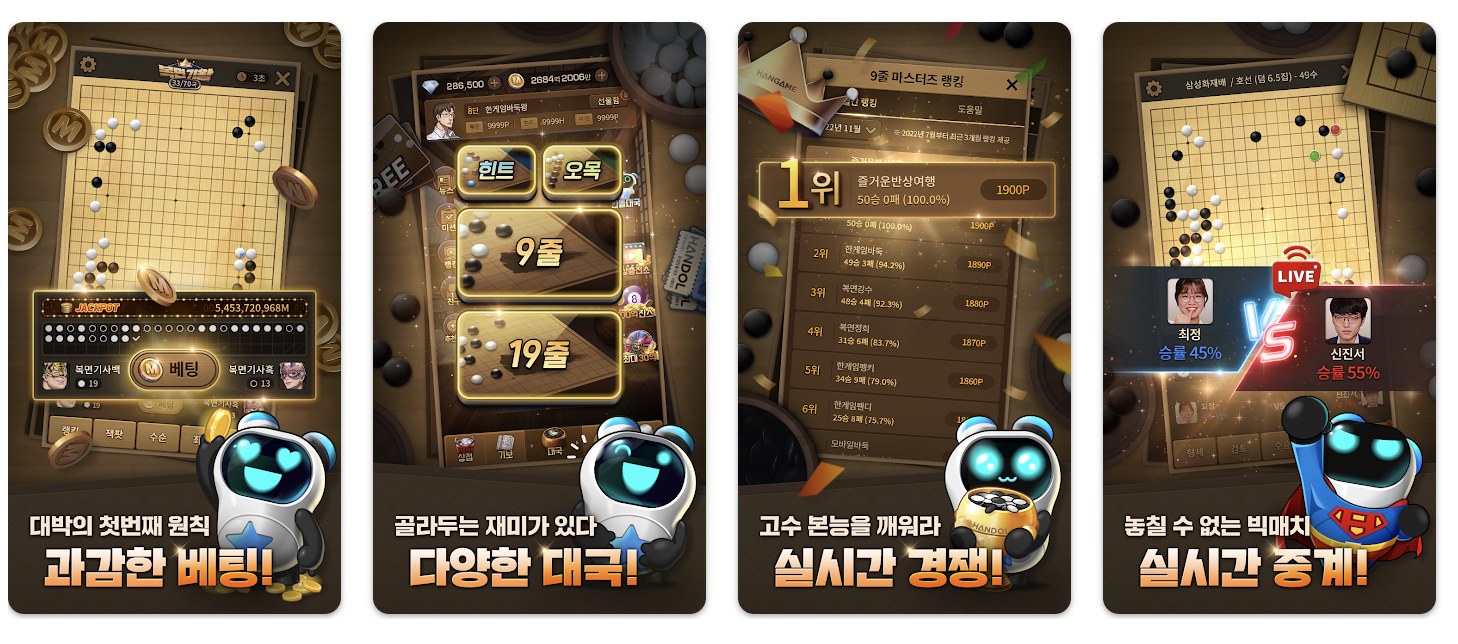 국내에서 유명한 게임 사이트인 한게임에서 나온 무료 컴퓨터 바둑게임 서비스입니다. 한게임 바둑은 많은 분들이 가입되어있으셔서 접근성이 좋다는 장점이 있습니다.